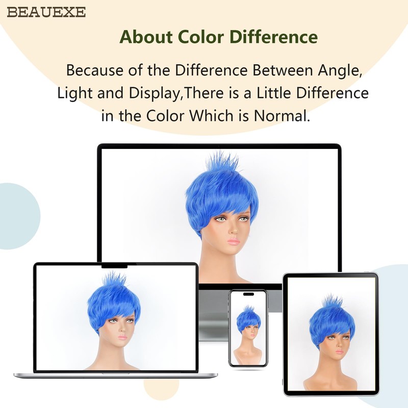 BEAUEXE Short Blue Wigs for Women Cosplay Short Layered Blue Hair Wig for Women Costume Party Wig