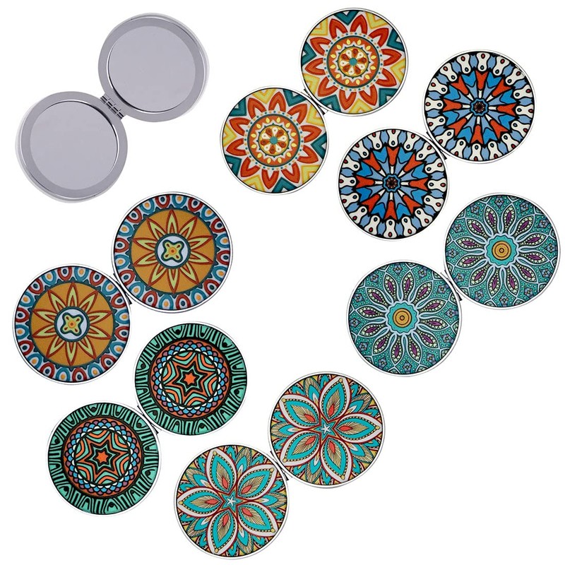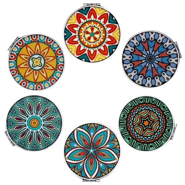 Beaufy Espejo Compacto De Aumento Viaje Maquillaje Bolsillo Plegable Portátil Pequeños Espejos Festival de Cumpleaños Regalos de Fiesta para Mujeres Niñas Damas en Relieve Diseño de Mandala 6 Unidades
