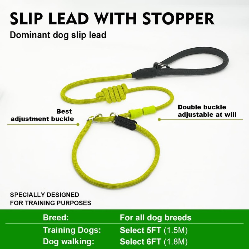 - 【 TRAINING EXCELLENCE】The slip leash tightens with pulling and loosens upon behavioral correction,easily stops dog from pulling . You only need to hold your arm steady and dog will stop when the lead becomes taut. Wait for your dog to slow down and continue ,it has proven effective with most dogs,making it an exceptional training tool.