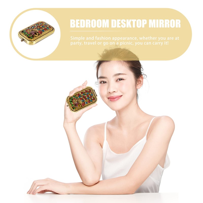 Beaupretty Espejo clásico clásico de maquillaje espejo portátil plegable espejo de cambiador de pavo real espejo de bolsillo pequeño espejo de doble cara espejo de viaje espejo de cambiador portátil