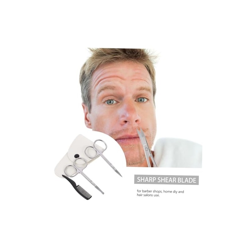 beard scissors The scissor is made of stainless steel material, which is durable enough for lasting use.beard trimming scissors This stainless steel beard scissors set can trim hair with ease.beard shears Its distinctive and handle design allows the scissor be comfortably handled and delivering a confident beard cut every time