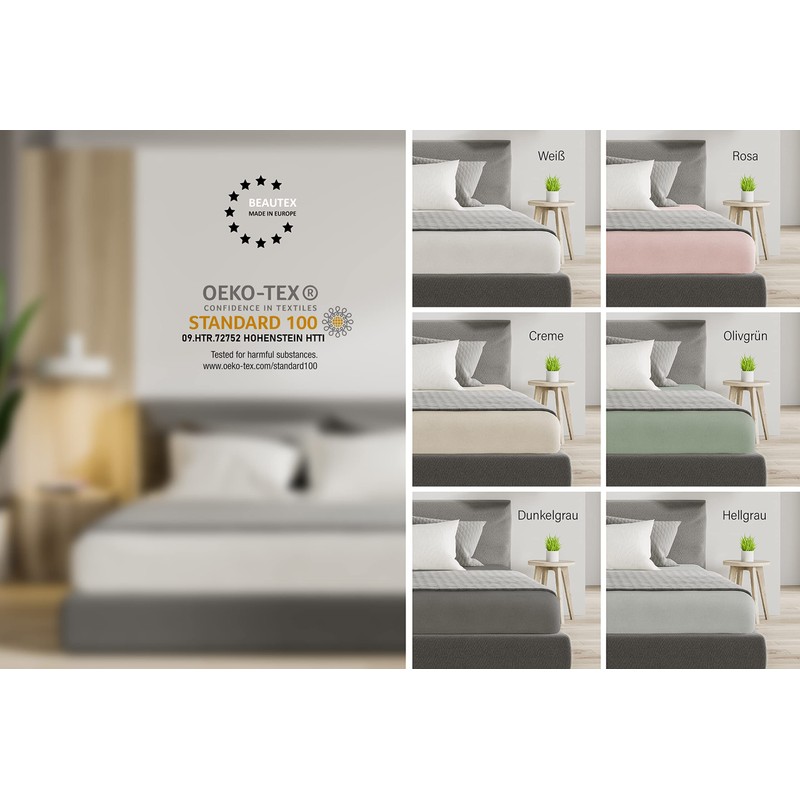 Fixing: Thanks to the sewn-in elastic band on the side, our sheets are particularly non-slip and easy to put on. The popular fitted sheets are stretched over the four mattress corners and pulled to the side. Thanks to the all-round elastic, slipping, or annoying wrinkles during sleep.