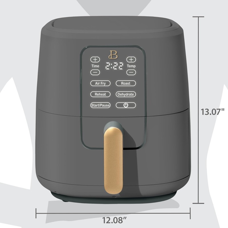Beautiful Drew Barrymore 6-Quart Digital Air Fryer, TurboCrisp Technology, 4 Presets, 170°F-400°F, Non-Stick, Dishwasher Safe, 1750 Watt. (OYSTER GREY)