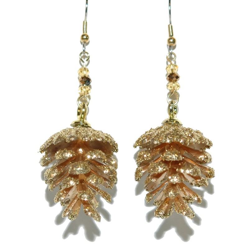 Beautiful Gold Glitter Pine Cone Christmas Dangle Earrings (H364)