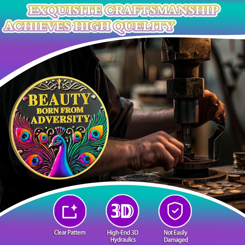 Beautiful Peacock Sobriety Coin, Beauty Born From Adversity NA AA Medal - Clean AA Chip and Medallion, Celebrate Addiction Recovery Anniversary Token, Non-religious Sobriety Gifts for Women
