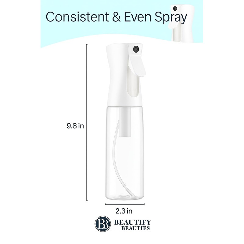 Upgrade your spraying experience with the BeautifyBeauties Continuous Spray Bottle, designed for effortless, even misting with just a gentle press. This multi-purpose mister delivers a fine, consistent spray for hairstyling, plant care, cleaning, and salon use. Whether you're refreshing curls, setting styles, misting houseplants, or grooming pets, this ergonomically designed bottle ensures a leak-free, controlled spray every time.