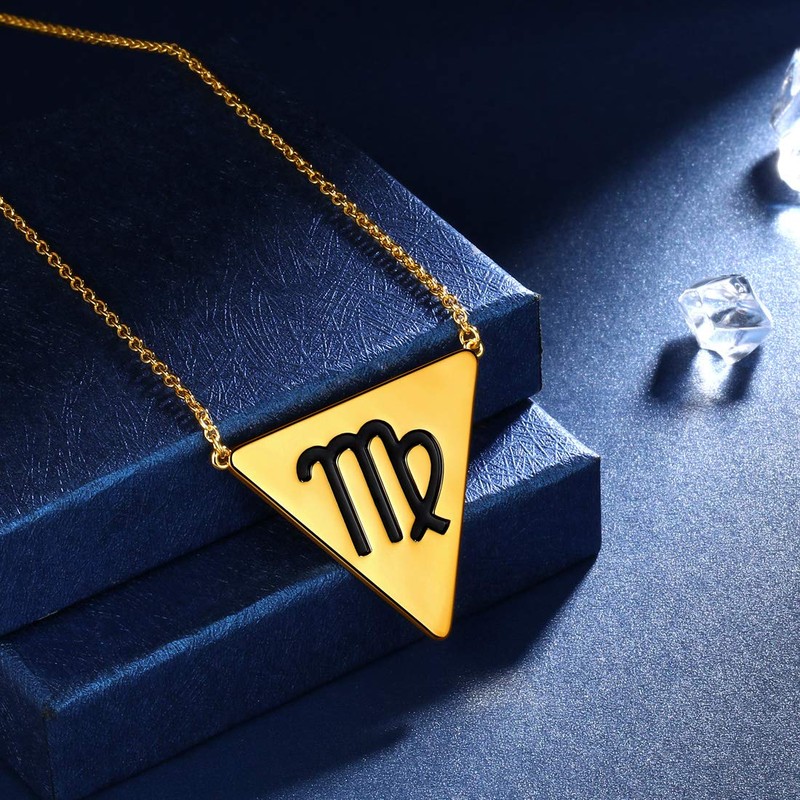 Beautlace Horóscopo Zodiaco Triángulo Collar 12 Constelación Astrología Charm 18K Oro / Plata / Negro Arma Colgante Chapado Collar para Mujeres Hombres Joyería Regalo
