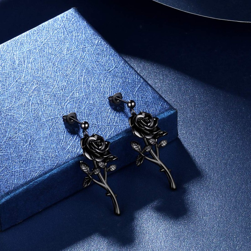 beautlace Rose Necklaces/Stud Earrings Sets Black Gun Plated Flower Jewelry Set Elegant Jewelry Gifts for Women KS0015K