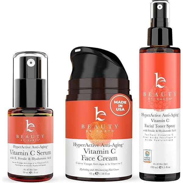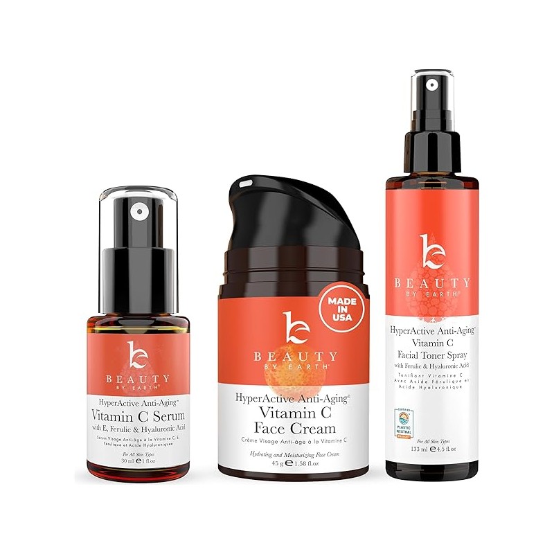 Beauty by Earth Vitamin C Face Cream, Serum and Toner - USA Made with Organic & Natural Ingredients
