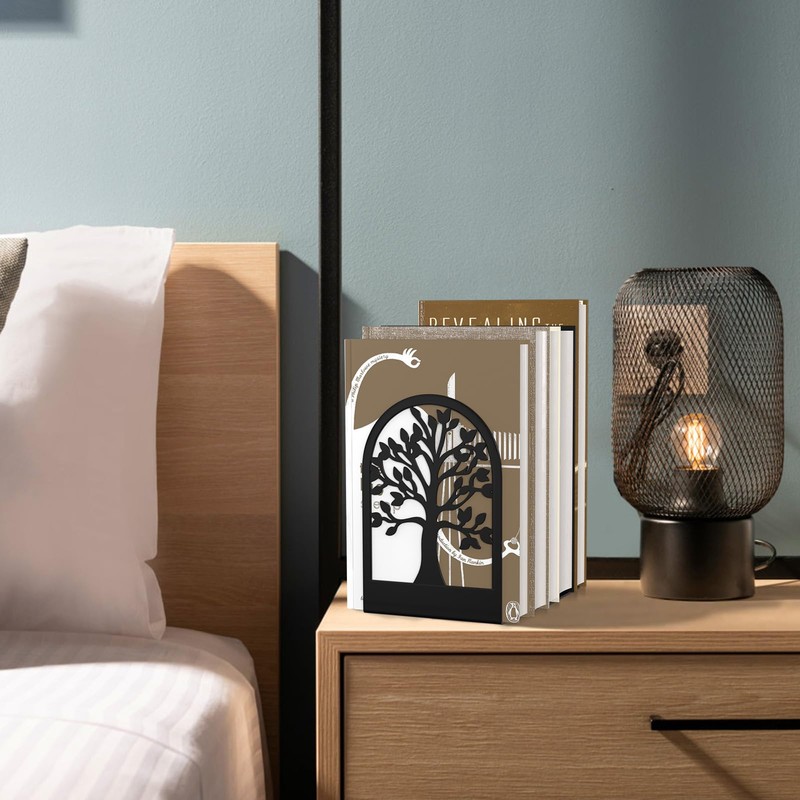 - DISEÑO ÚNICO: Sostenedor de libros adoptado con un delicado diseño de árbol hueco, forma simple y generosa. Hay 4 pies antideslizantes en la parte inferior de bookends, que puede prevenir mejor el estante se deslice y mantener la libre de arañazos. Práctico y decorativo.