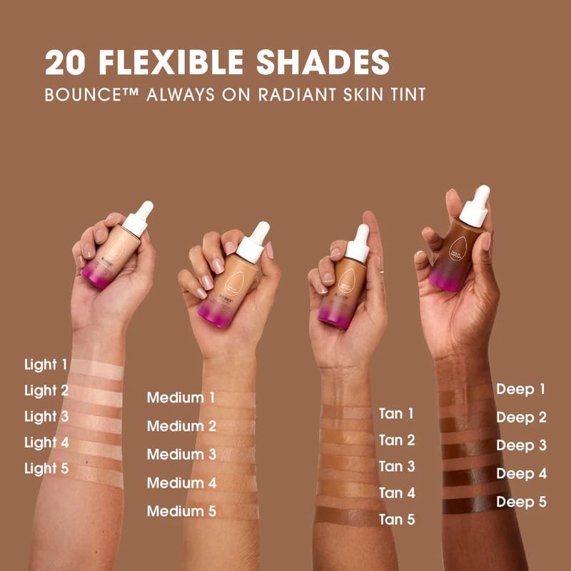 Beautyblender 12-Hour Always on Radiant Skin Tint, Breathable Serum Foundation Stays Put for All Day Long Wear, Infused with Hyaluronic Acid & Niacinamide, Tan 1