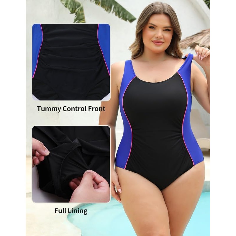 - SPORTY & DURABLE FABRIC – This plus size athletic swimsuits feature chlorine-resistant, quick-drying fabric with 4-way stretch for unrestricted movement. The full lining construction provides complete coverage and compression support, while maintaining the fabric's signature breathability for aquatic training and outdoor swimming