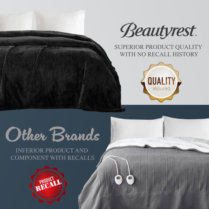 Beautyrest - BR54-0910 Heated Plush Elect Electric Blanket with 20 Heat Level Setting Controllers Equip with Secure Comfort Technology and 10 Hours Auto Shut Off, King: 90x100, Black