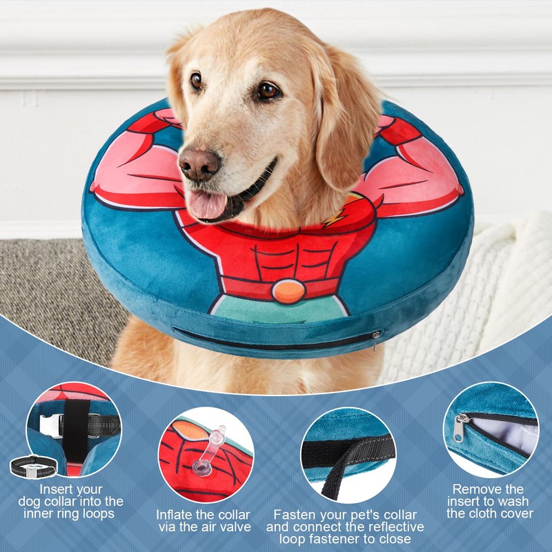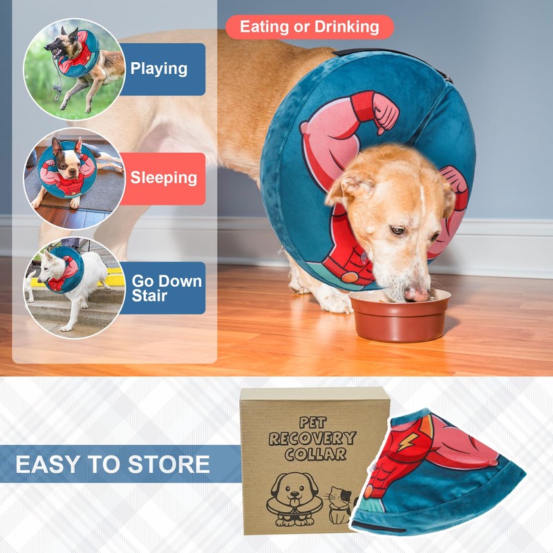 • Easy Cleaning & Store- Take off the liner and leave the collar coverlet in the washing machine and can easily be cleaned if needed. The soft material also doubles as a neck pillow, promoting a comfortable sleep for your pet. After use, it can be deflated and stored in the boxes. With this E-Collar on, the unique and cute donut shape makes it like a pet ornament instead of a dog head cone, your pet must be a million times happier with this.