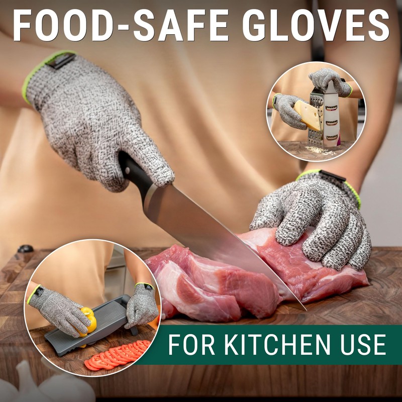- Food Safe Gloves for Kitchen Confidence: 100% food safe, these no-cut gloves for food prep keep your hands protected from sharp utensils.