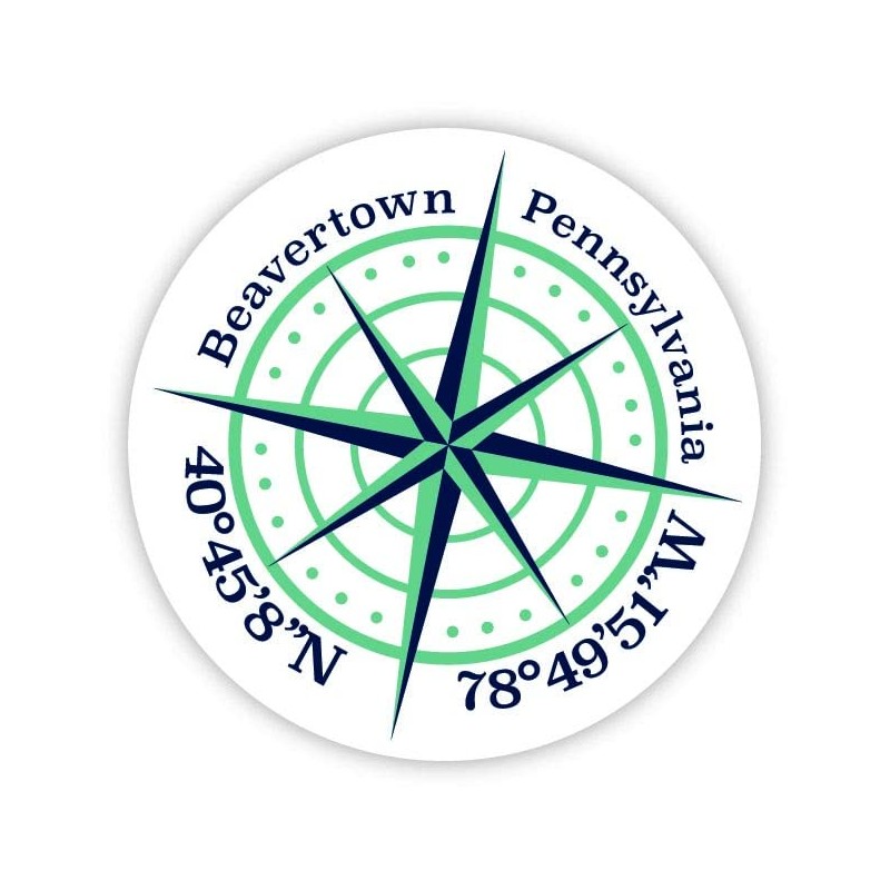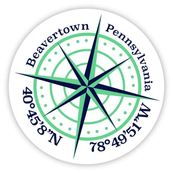 - Features a cool Latitude Longitude Compass Design with Beavertown, PA printed on it.