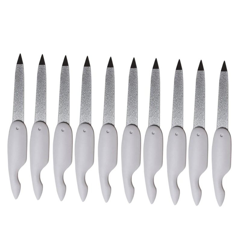 Beavorty 10pcs Portable Folding Nail Files Professional Double-Sided Nail Buffers for Manicure and Pedicure for Natural and Artificial Easy to Carry White