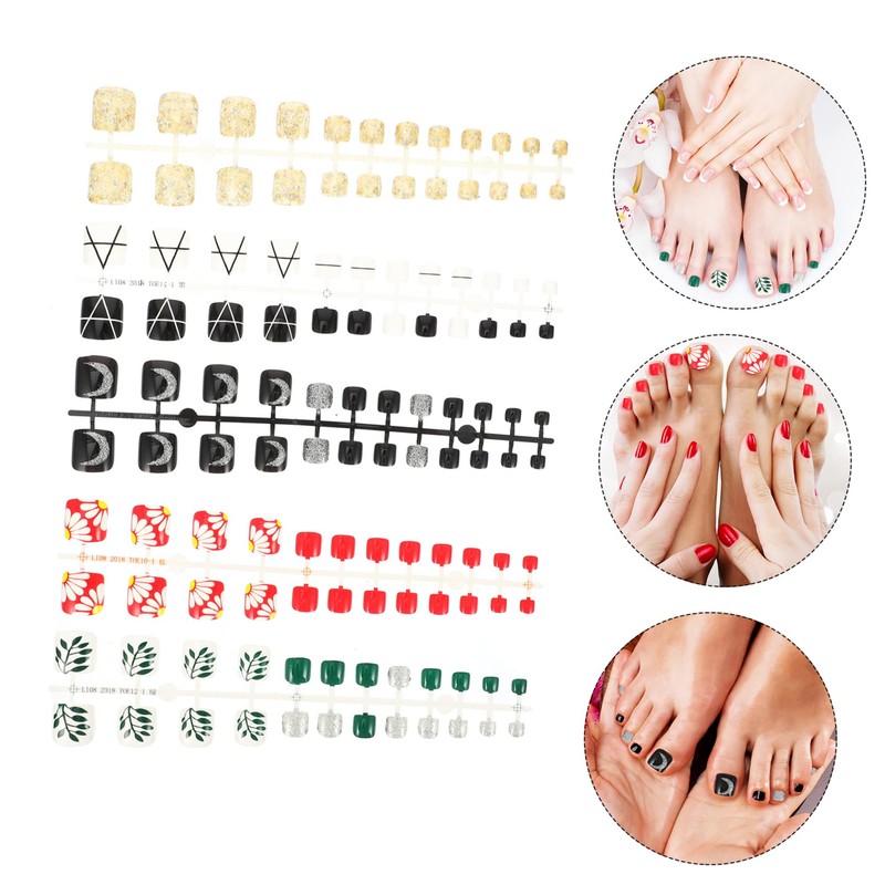Beavorty 5sets Full Cover Artificial Toenails for DIY Nail Art Easy to Use Press Pedicure Tips for Parties and Special Occasions