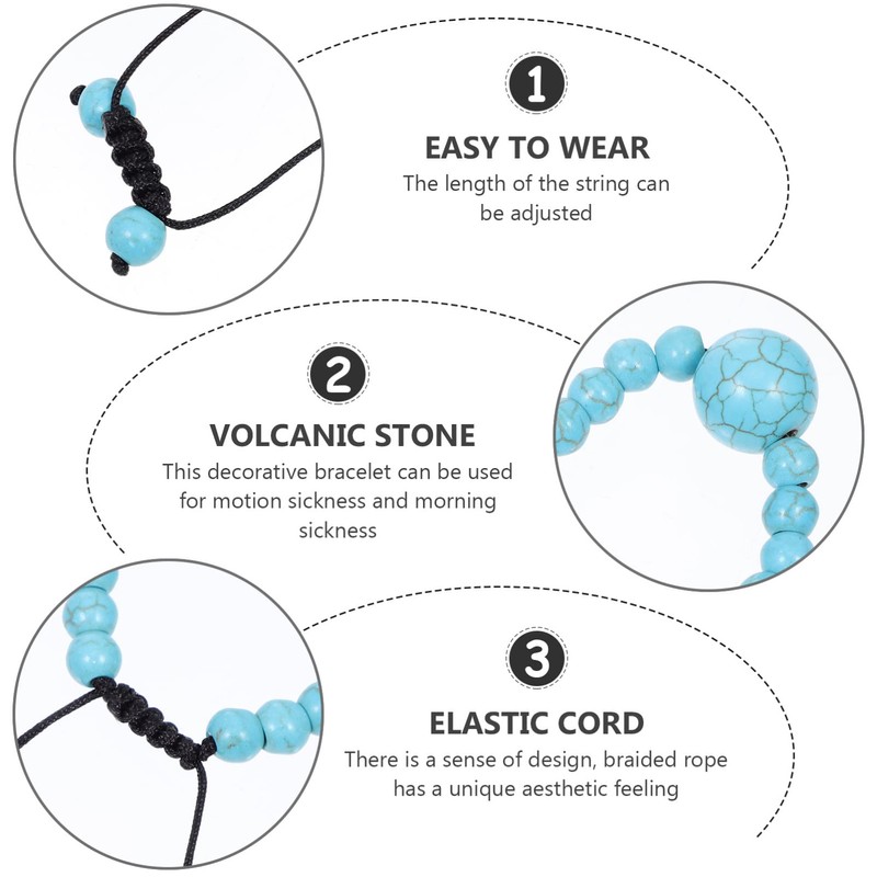 This is a decorative beaded bracelet made of volcanic stone material, which is skin-friendly and strong, not easy to break. With this wristband, you are no longer afraid of motion sickness, and can relieve your motion sickness more effectively.