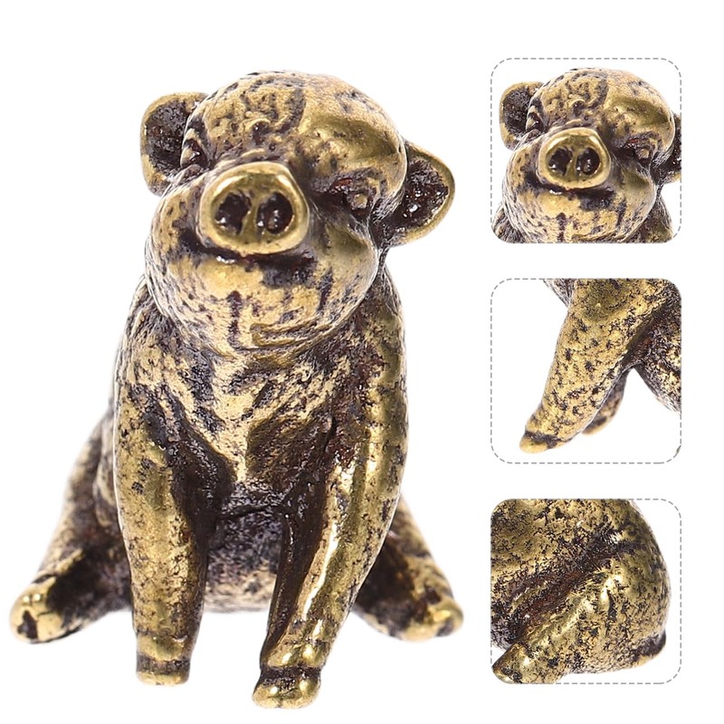 - Brass small pig shape figure home decor statue miniature sculpture mini brass figure Chinese Feng Shui brass mini statue pig figure miniature farm animal statue animal sculpture collectibles for micro landscape decor gift.