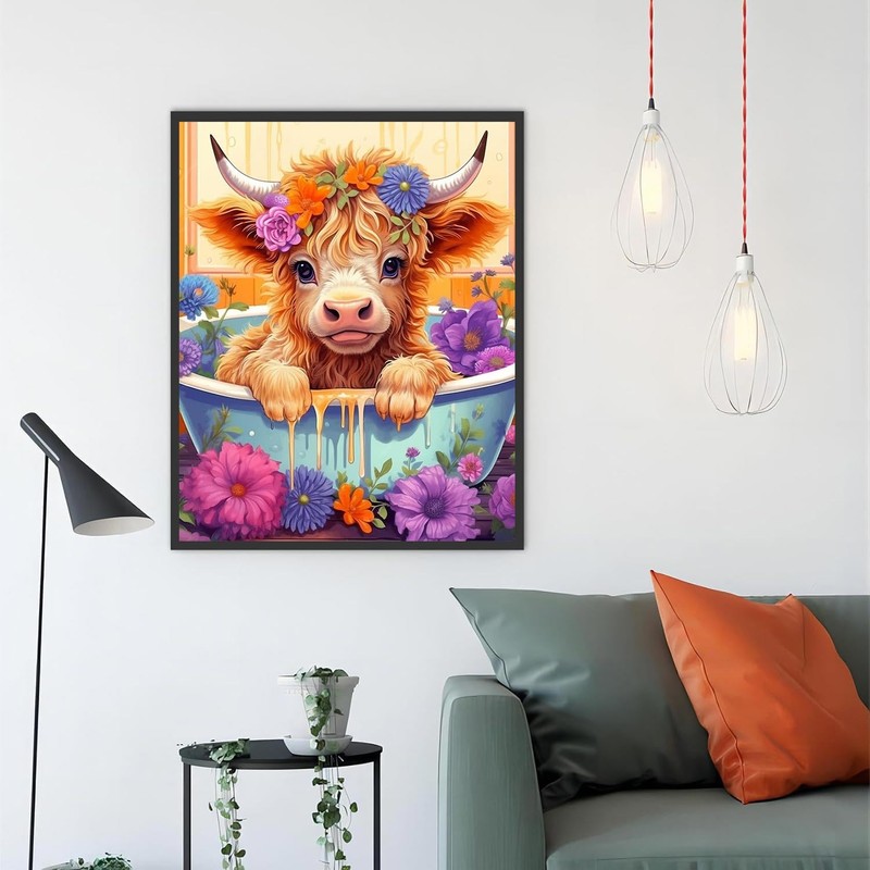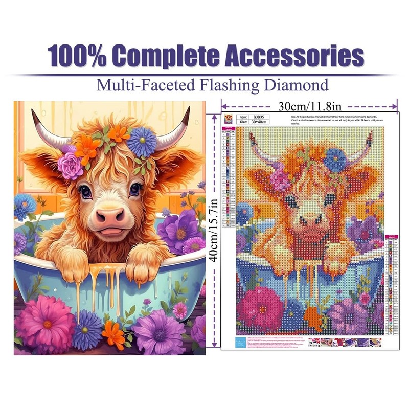 BEAYIOU Cow Diamond Painting Kits for Adults Beginners - Flower Diamond Art Kits for Adults,DIY Round Full Diamond Gem Art Suitable for Home Wall Decor Gifts(11.8x15.7in)