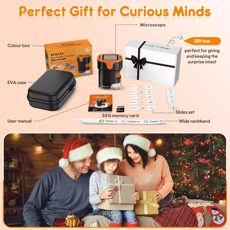 Gift Box: A gift box has been added to the outside of the product's colour box. Not only protect the microscope and slides better, but also keep the surprise.