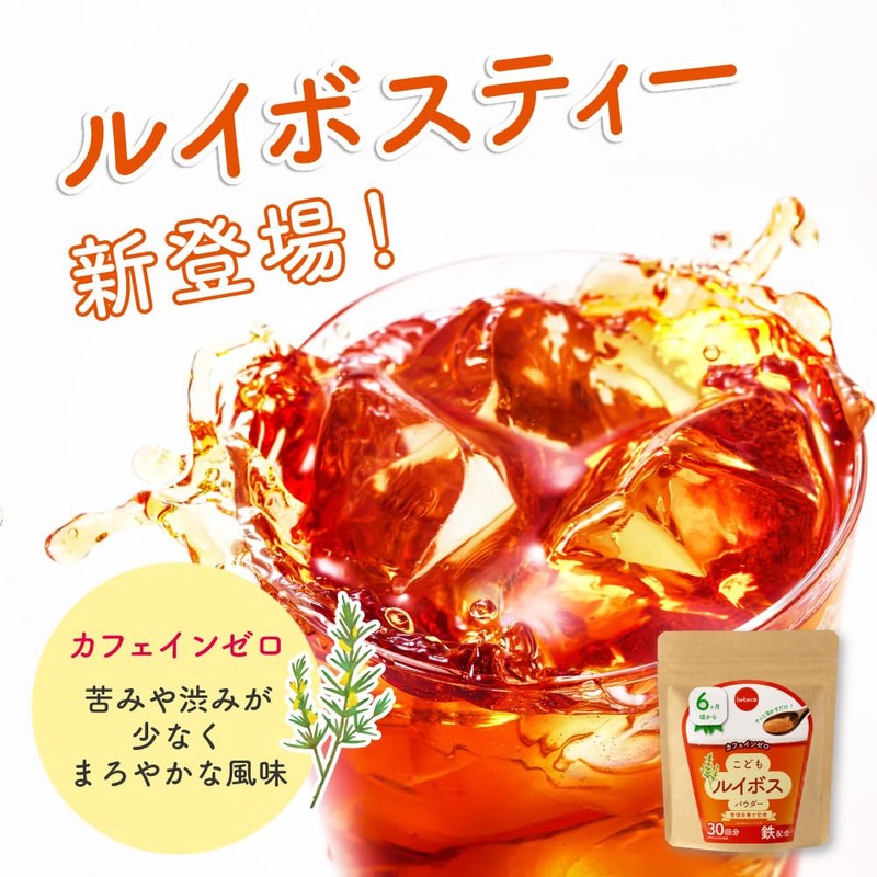 「こどもルイボス」は、不足しがちな鉄分と吸収をサポートするビタミンC配合の便利なルイボスティーパウダーです。苦みや渋みが少なくまろやかな風味♪