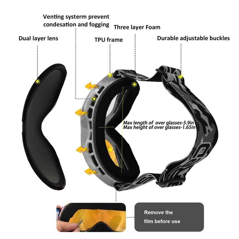 - Super lightweight lens with wider vision and two-way ventilation holes frame. Hypoallergenic Super-Soft Face 3-layer Foam provides a precise fit, it can fit over glasses.