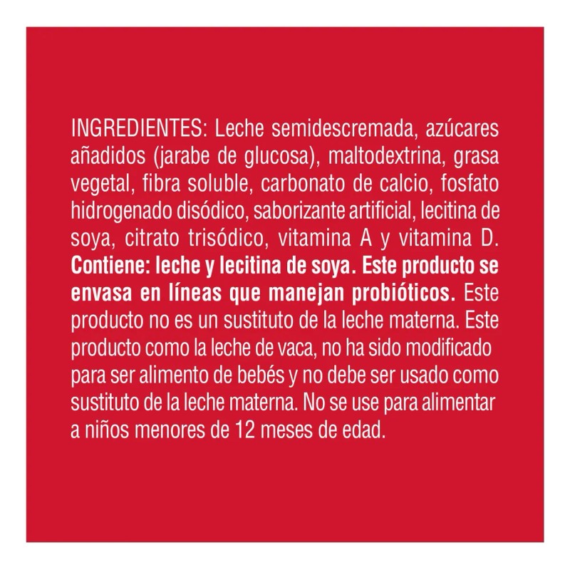 Alimento en polvo para preparar bebidas a base de leche con grasa vegetal, adicionado de vitaminas y minerales, con un delicioso sabor y cremosidad.