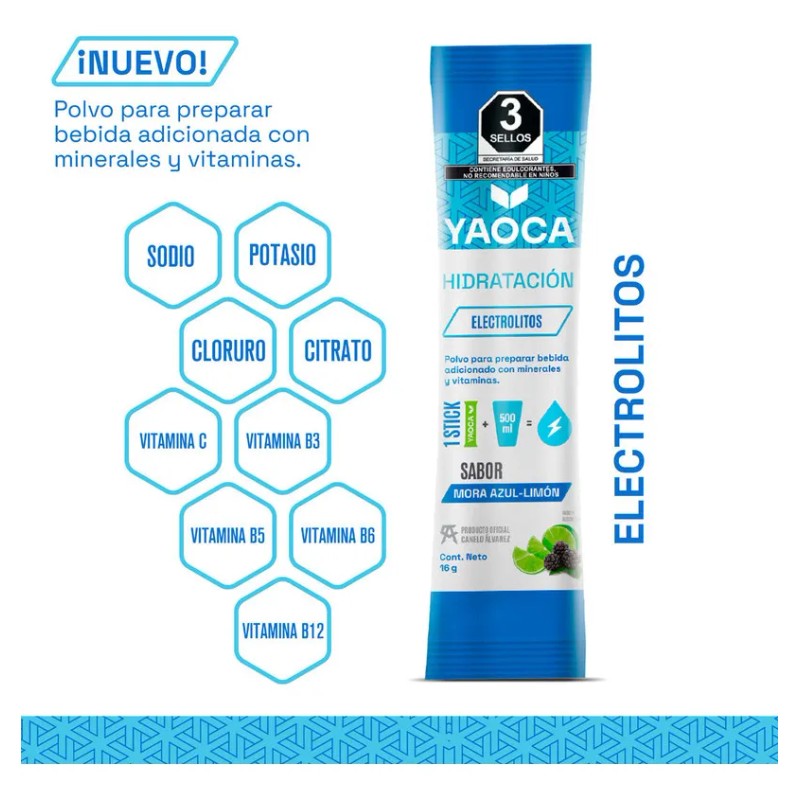 Bebida Hidratante en Polvo I Yaoca I 30 Sobres I Sabor Mora - Limón I Con Electrolitos, Vitaminas y Minerales para Deportistas