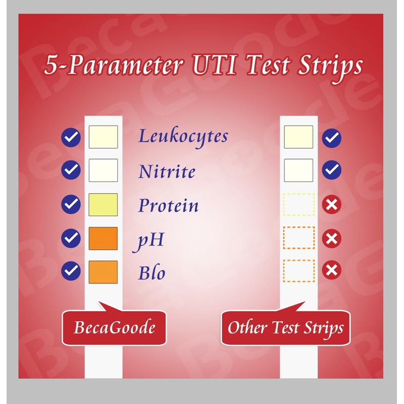 BecaGoode Rapid Urine Test Strips 5 Parameters, UTI Test Strips/Urinary Tract Infection Test Strips- 100 Count