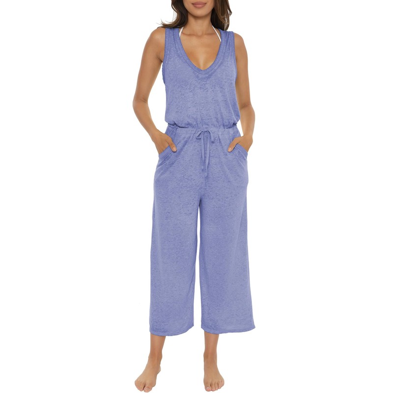 Becca by Rebecca Virtue Women's Standard Date Jumpsuit, Casual, Sleeveless with Pockets, Beach Cover Ups, Cornflower