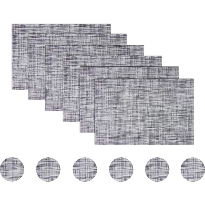 BECHEN Placemats with Coasters Set of 6, Vinyl Heat-Resistant Table Mats Washable Plastic Kitchen Placemats for Dining Table Indoor Outdoor(45x30 cm, Multi-Grey)