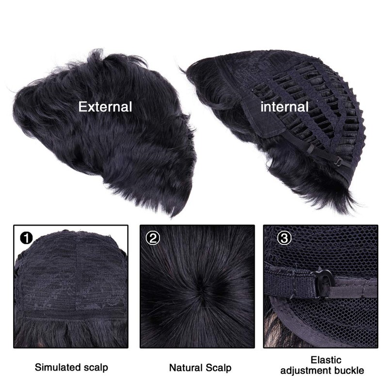 - ☆Mens Wig Texture - Short Curly Layered Men’s Pixie Cut Wig, Color: Natural Black #1B, Weight: Approximately 100g. No matter what color your skin is, black or white, the absolutely black color of the wig will match your color, make you more handsome and cool.