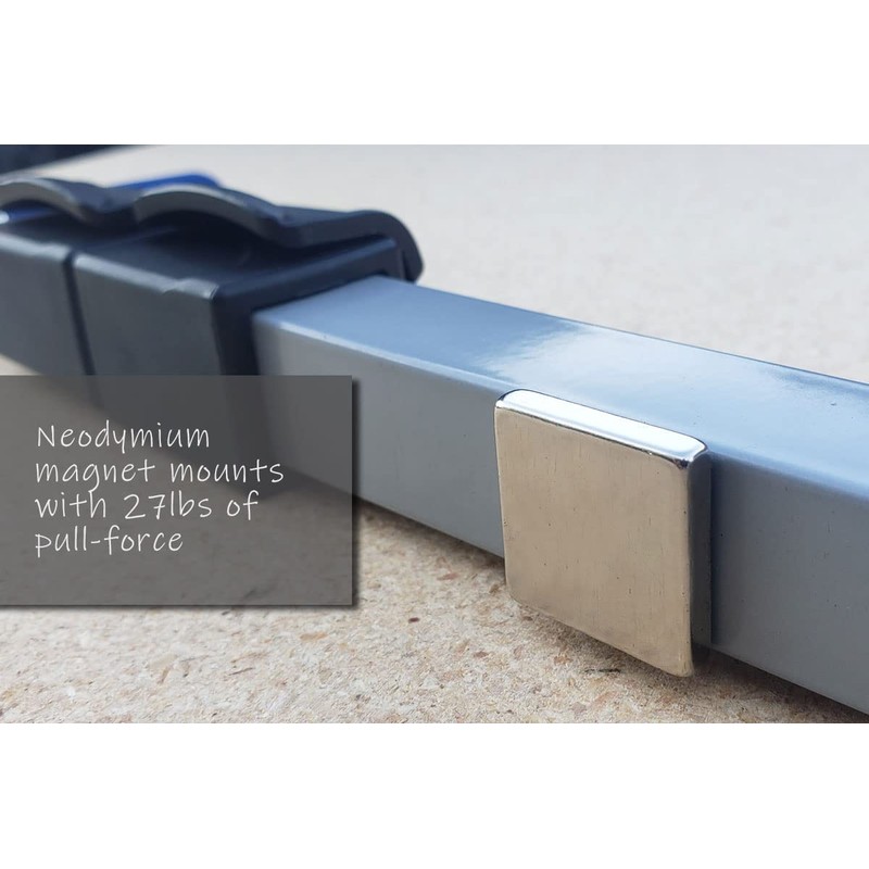 - Mounts magnetically to ALL beds/bedliners. Out of the way when not in use, but EASILY ACCESSIBLE when needed.