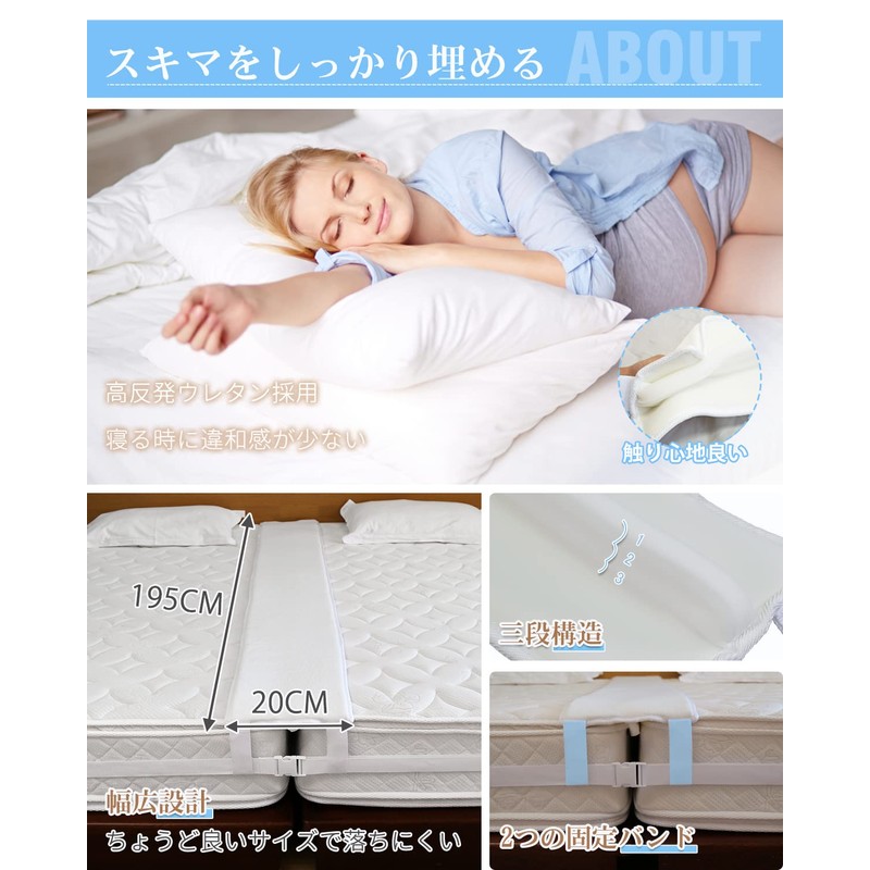 - (Updated Version) Customers have received a voice that makes the pad easy to sink into the gaps.) We have improved the product by considering many different things. Made with high-resilience and highly elastic urethane that is molded together to fit perfectly into the gap and firmly fill the gaps. Add up to 2 connection bands to secure the mattress band to prevent the pad from shifting and falling down in the gaps