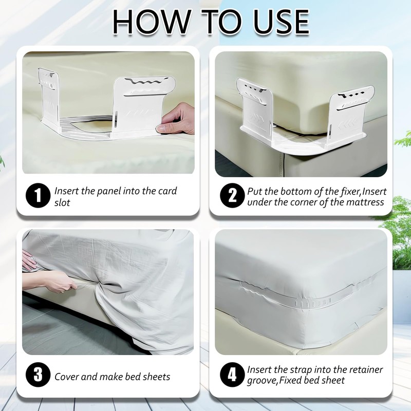 - Firm hold, no more slipping. With high-strength brackets, the system reliably fixes the bed sheet corners. Prevents annoying slipping, rolling up and folding during sleep - guarantees a smooth lying surface and restful nights.