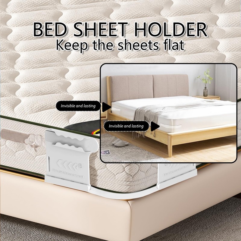 Bed Sheet Clips, Improved Bed Sheet Holder, Height Adjustable, Fits All Sheets and Robust Mattresses, Mattress Holder Prevents Slipping, Easy One-time Installation