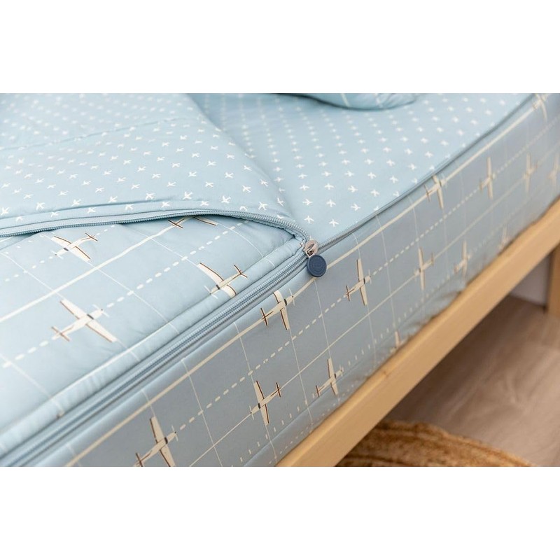 Beddy's Airplane Theme Durable Zipper Bedding for Kids, Bed in a Bag, Light Blue Sheets & Comforter with Plane Design, Includes Pillowcase & Pillow Sham Easy to Make & Wash