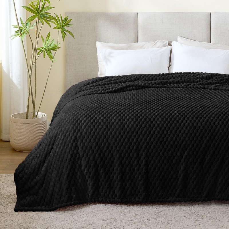 BEDELITE Fleece Blanket, Large Queen Blanket for Bed, 3D Jacquard Decorative Black Fuzzy Blanket, Soft and Cozy Warm Plush Fluffy Blanket All Seasons Suitable, 90x90Inches