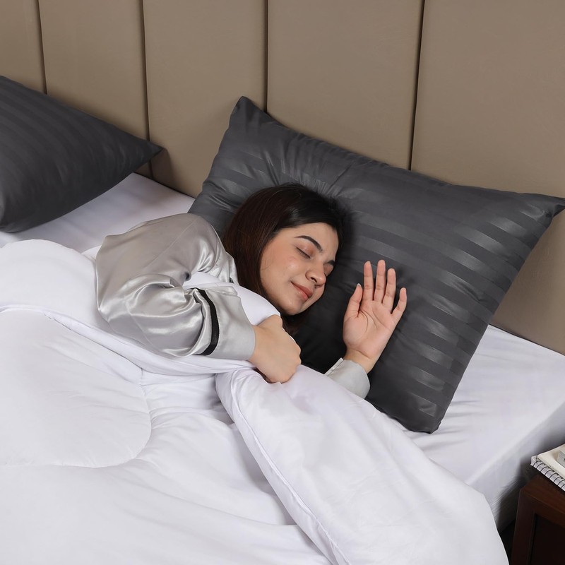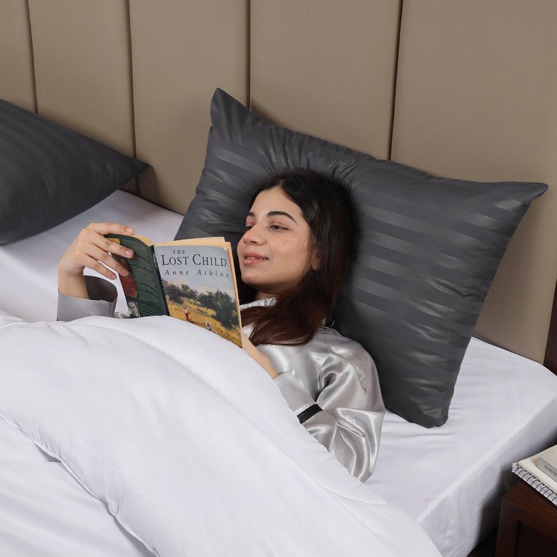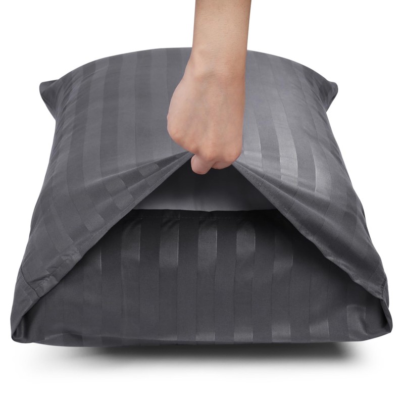 BedLooms Charcoal Pillow Cases 2 Pack - 100% Microfiber Envelope Closure Stripe Pillow Cases 50x75cm Premium Hotel Quality Anti Allergy Pillow Cover