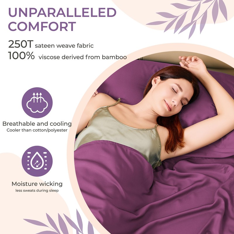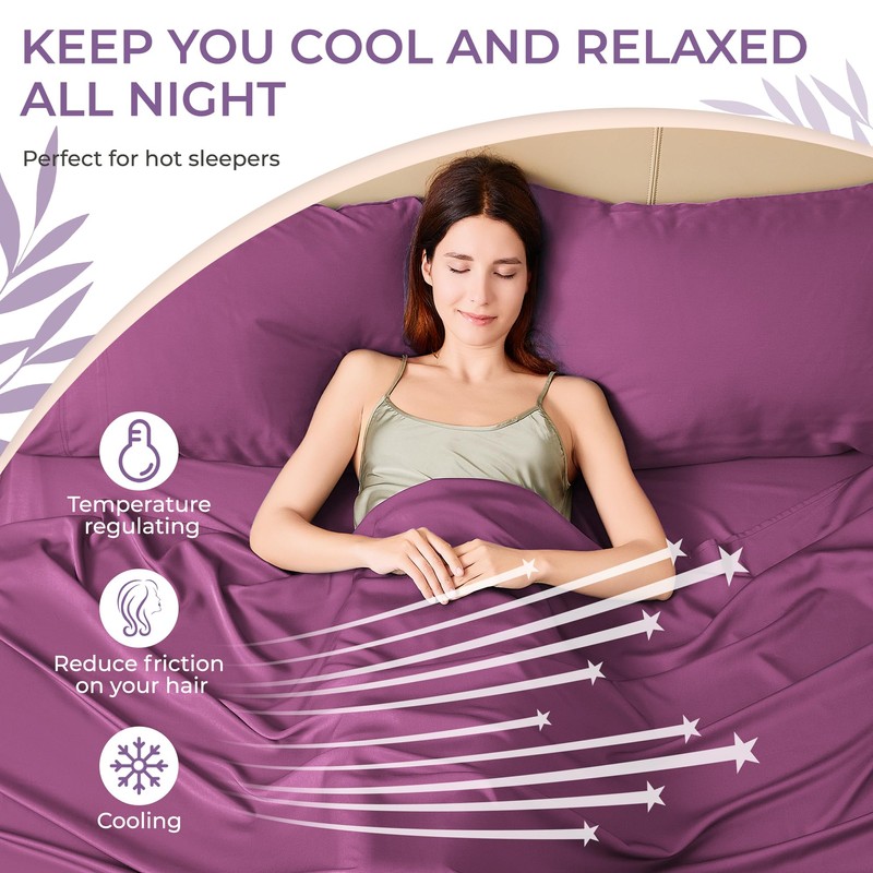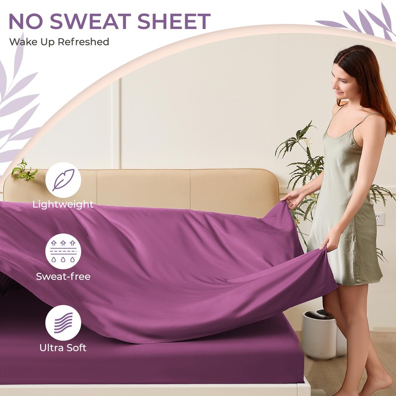 - Cooling: Crafted from 100% viscose derived from bamboo, the Bedmoon queen purple cooling sheet offers unparalleled breathability, and cooling effect - temperature regulating sheets keeps you cool and relaxed all night, perfect for hot sleepers