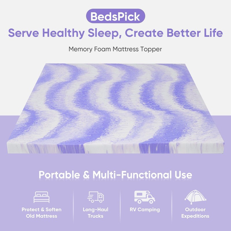 BedsPick 3 Inch Memory Foam Mattress Topper Twin XL, Gel Infused Swirl Soft Foam, College Dorm Extra Long XL Mattress Toppers Single Bed Toppers