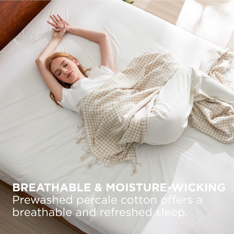 - Breathable & Moisture-Absorbent: Made from premium 100% cotton, this cotton fitted sheet is breathable and moisture-wicking. Percale cotton is more breathable and lighter than cotton sateen, ideal for warm sleepers who wish to wake up refreshed