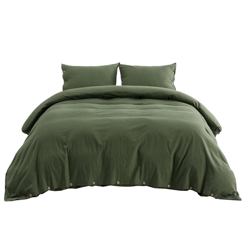 Bedsure Linen Duvet Cover Queen - Linen Cotton Blend Bedding Set, Soft & Cozy, 3 Pieces, 1 Duvet Cover 90x90 Inches and 2 Pillowcases, Olive Green Color Cooling Bedding, Comforter Sold Separately