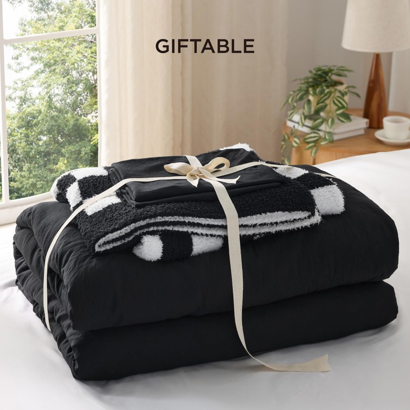 - VERSATILE BLANKET: Our bed-in-a-bag set includes a stylish checkered blanket that works beautifully as a decorative layer or standalone throw. Anti-static treatment prevents lint and static electricity for year-round comfort