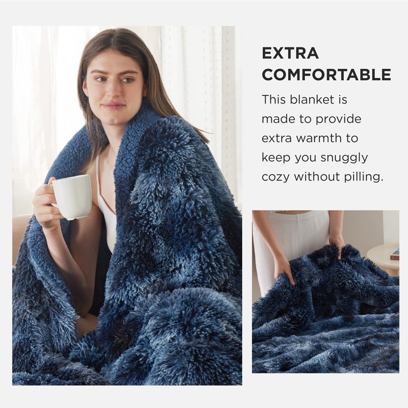 Bedsure Soft Tie Dye Navy Throw Blanket for Couch, Fluffy Fuzzy Blankets & Throws for Bed, Sofa, Cozy Plush Sherpa Fleece Faux Fur Blanket, Thick Warm Christmas Blanket Gifts for Women, Men, 50x60