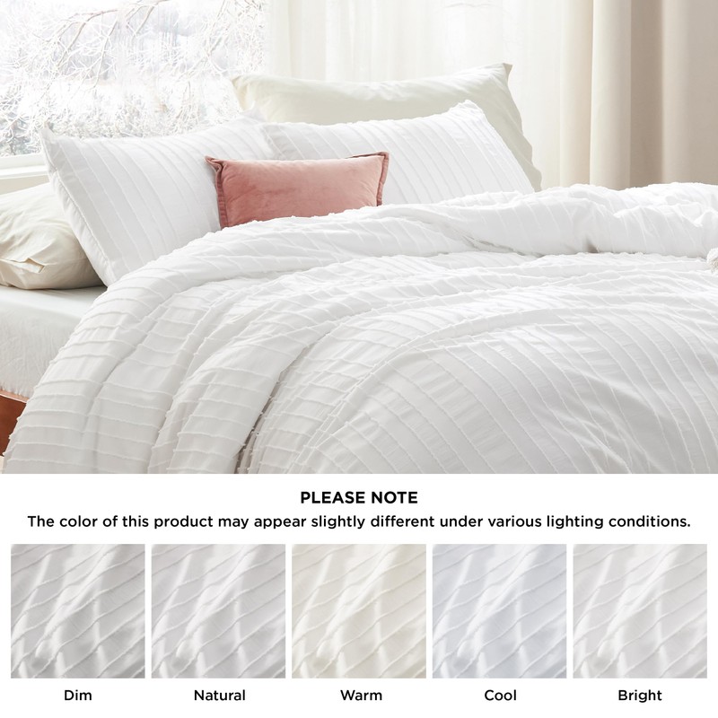 Bedsure Striped Tufted Duvet Cover Queen - Shabby Chic Duvet Cover, 3pcs All-Season Size Boho Bedding for All Seasons, Includes 1 Queen Duvet Cover & 2 Pillowcases (White, Queen, 90"x90")