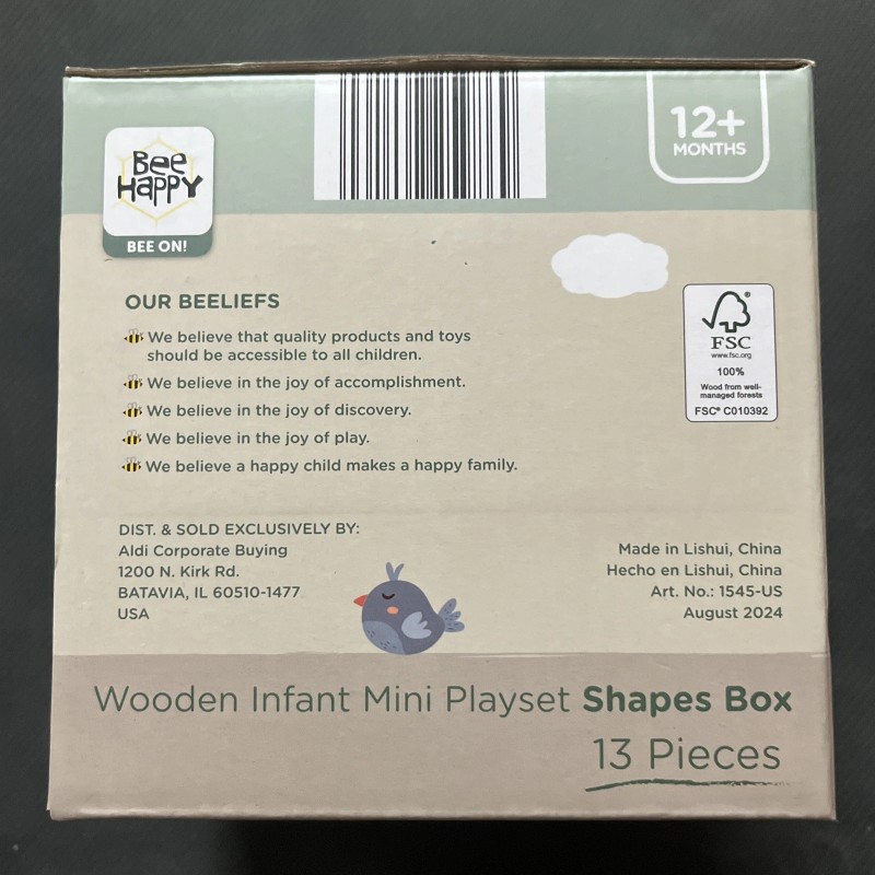 Bee Happy Wooden Infant Mini Playset Shapes Box 13 Pieces 12+ Months NEW