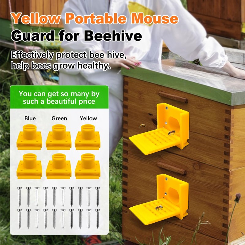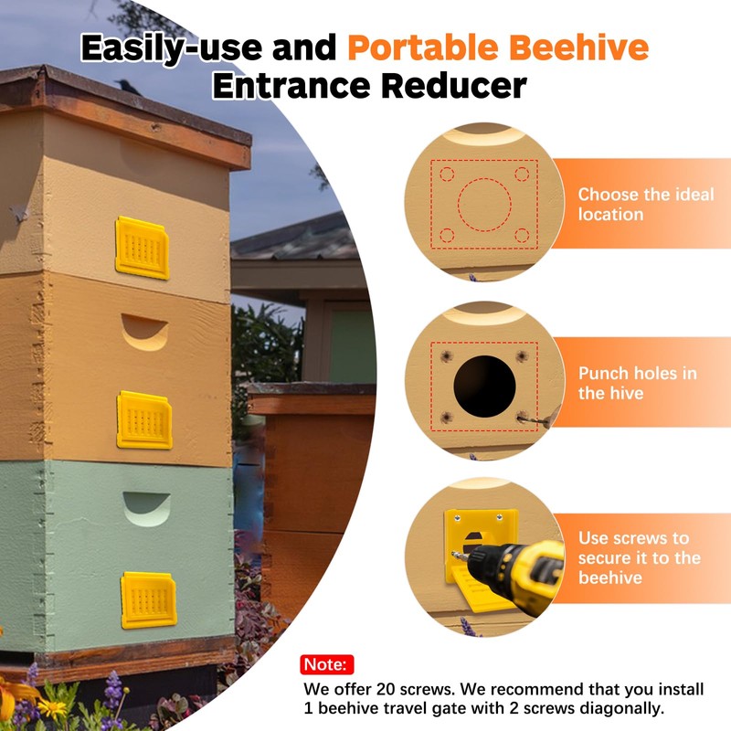 - Essential Beekeeping Supplies and Tools: For one such beautiful price, you can get up to 6 square bee hive entrance reducers, convenient for you to use and replace for multiple hives. For your convenience, we also give you 1 pack (20pcs) of mounting screws for easy installation. (We recommend 2 screws for a single bee hive entrance reducer, diagonal installation is sufficient) We sincerely wish you more and more full peak colonies and larger beekeeping scale